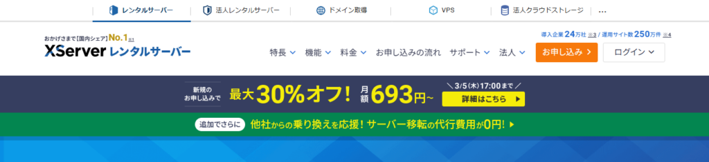 | エックスサーバー | 約880円(キャンペーン価格) | 国内シェアNo.1、20年以上の運営実績、情報量が圧倒的 |