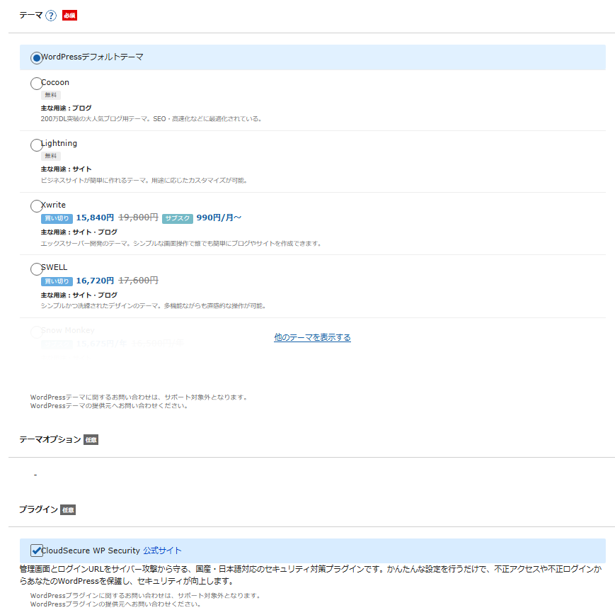 - 上位プランの特典「Xwrite無料」は、別の優秀な無料テーマ(Cocoon)があるので不要
